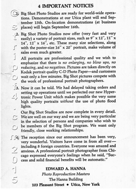 flyer from him for a machine that he was developing called the "Big