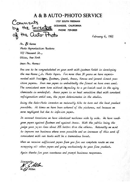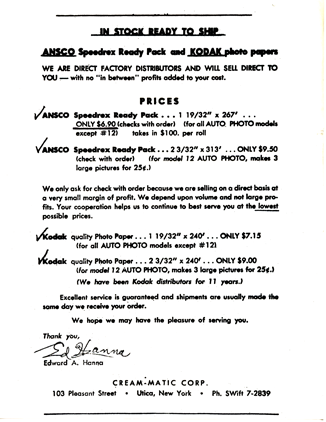 In 1951, Hanna became a distributor of a direct positive photo line for