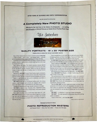 distributor for coin-operated, automatic photo studios where one sat on
