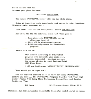 booth pen pals business called Photo Pals where you would send in a